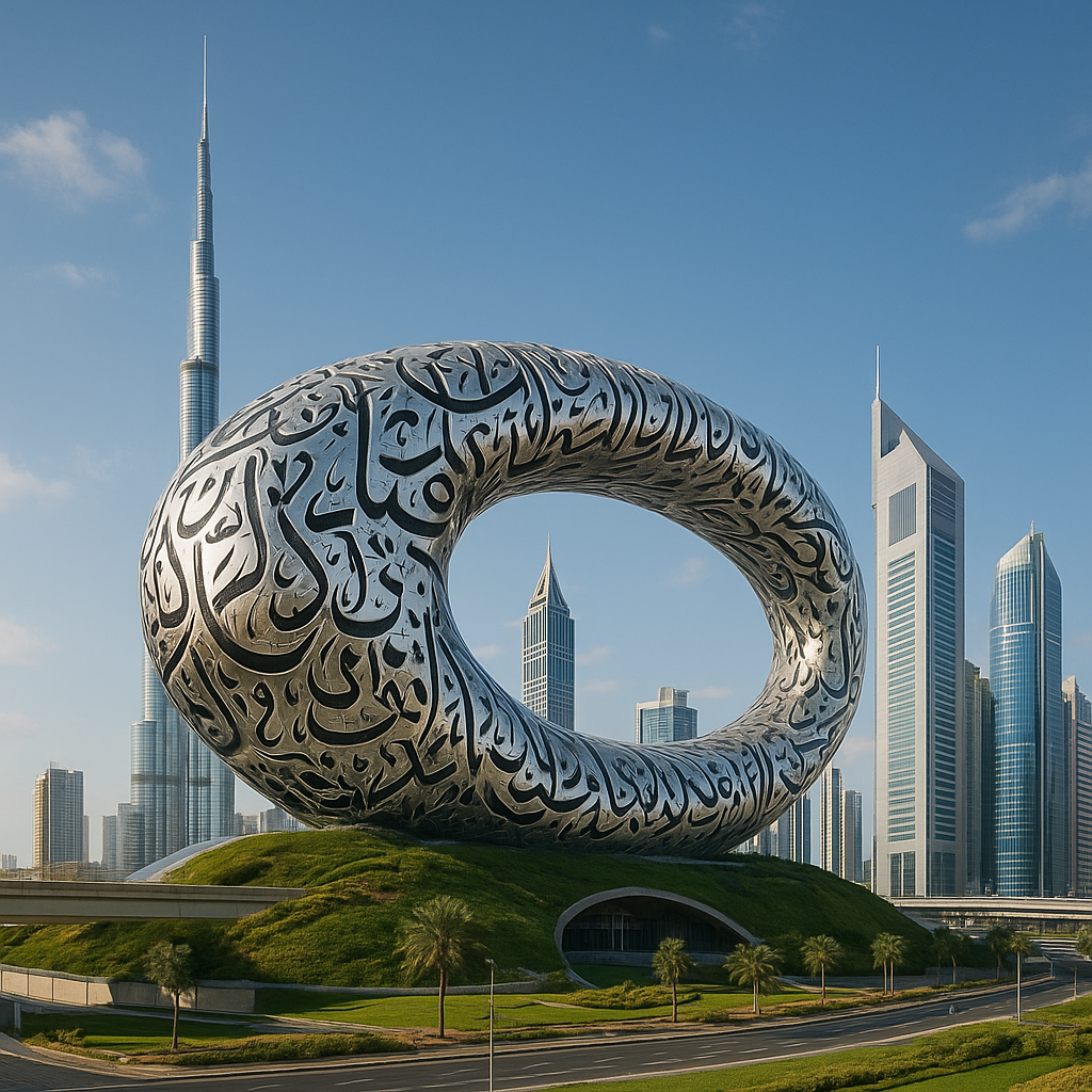 - Museum of the Future: Die elliptische Form ruht auf Glasstützen und wirkt beinahe schwerelos – ein Paradebeispiel für digitale Planungs- und Fertigungstechniken.